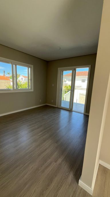 No pavimento superior, a área íntima oferece três suítes e um amplo terraço, garantindo privacidade e conforto aos moradores.